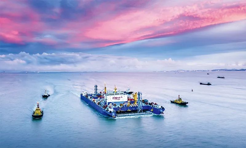 2023年6月11日,由中交一航局第二工程有限公司參與施工的國家重大工程深中通道海底沉管隧道最終接頭合龍。圖為2023年6月8日,“一航津安1”號沉管運(yùn)輸安裝一體船將E23管節(jié)和最終接頭浮運(yùn)至安裝現(xiàn)場。 新華社發(fā)