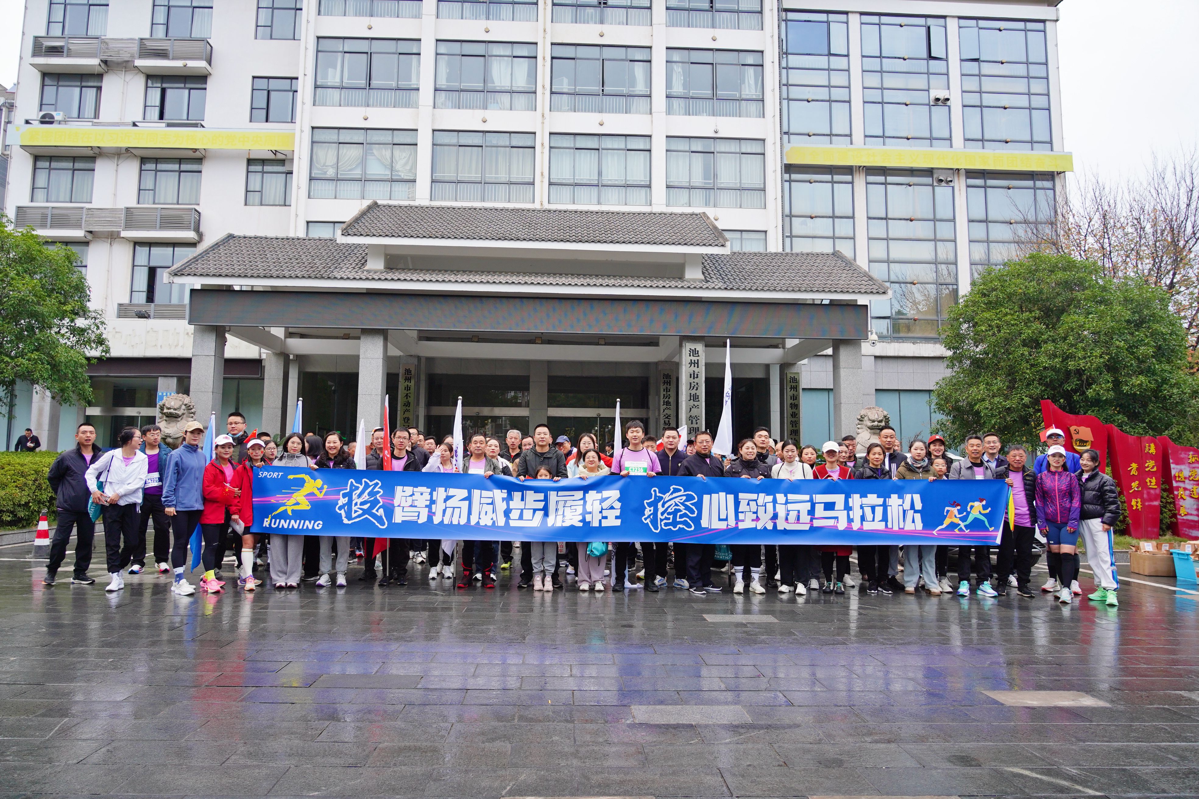 11月24日,2024池州馬拉松在平天湖蓮花臺廣場正式開跑,來自世界各地15000余名選手齊聚賽道為冬日的山水池州增添一份炙熱,燃起一道壯麗的風(fēng)景。市投控集團200余名職工踴躍參賽 、活力開跑。上午7時,市投控集團在既定集合點舉辦出征儀式邀請專業(yè)教練帶領(lǐng)選手們進行賽前熱身,200余名職工蓄勢待發(fā)、元氣滿滿,在歡聲笑語中盡情奔跑,享受著運動帶來的愉悅與暢快。
