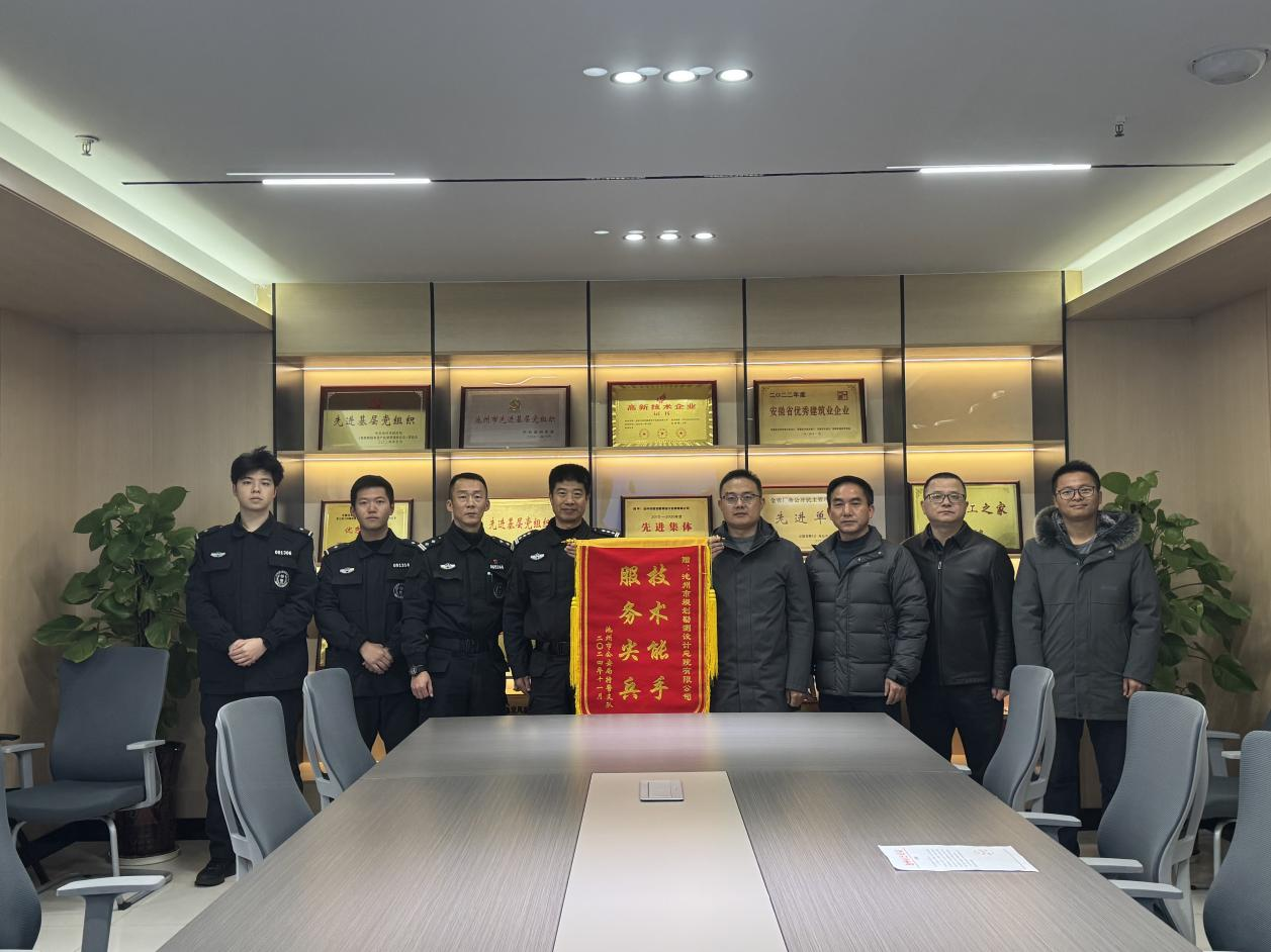 12月10日,池州市公安局特警支隊(duì)支隊(duì)長陳后剛一行赴設(shè)計(jì)總院送來錦旗和感謝信,感謝設(shè)計(jì)總院在該局執(zhí)行某專項(xiàng)任務(wù)時給予的裝備和技術(shù)支持,并對設(shè)計(jì)總院在支援期間展示的扎實(shí)的工作作風(fēng)和過硬的專業(yè)素養(yǎng)表示充分肯定。