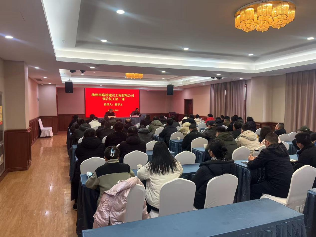 2月9日下午,市路橋公司組織全體職工舉辦了2025年春節(jié)“節(jié)后復工第一課”講座,進一步做好節(jié)后復工復產(chǎn)安全生產(chǎn)工作,強化落實安全生產(chǎn)主體責任,用心用情上好“安全第一課”,助力復工復產(chǎn)。講座以增強員工安全生產(chǎn)意識、落實企業(yè)安全生產(chǎn)責任以及風險排查及防范為主要內(nèi)容,通過抓牢責任分解、抓深安全工作部署、抓嚴復工核準、嚴格把好開工人員準入關、認真開展安全風險識別與分級管控、組織安全隱患全面深入排查、夯實應急管理工作等方面深入講授,用大量案例引導企業(yè)切實做好復工復產(chǎn)安全生產(chǎn)工作,重點強調(diào)先安全后生產(chǎn)。“復工第一課”既是一次警示教育的安全會,也是一次調(diào)整狀態(tài)的收心會,市路橋公司將以此次“復工第一課”講座為契機,持續(xù)強化公司安全生產(chǎn)教育,強化全體職工的安全意識,提升安全生產(chǎn)管理水平,防范安全生產(chǎn)事故發(fā)生。