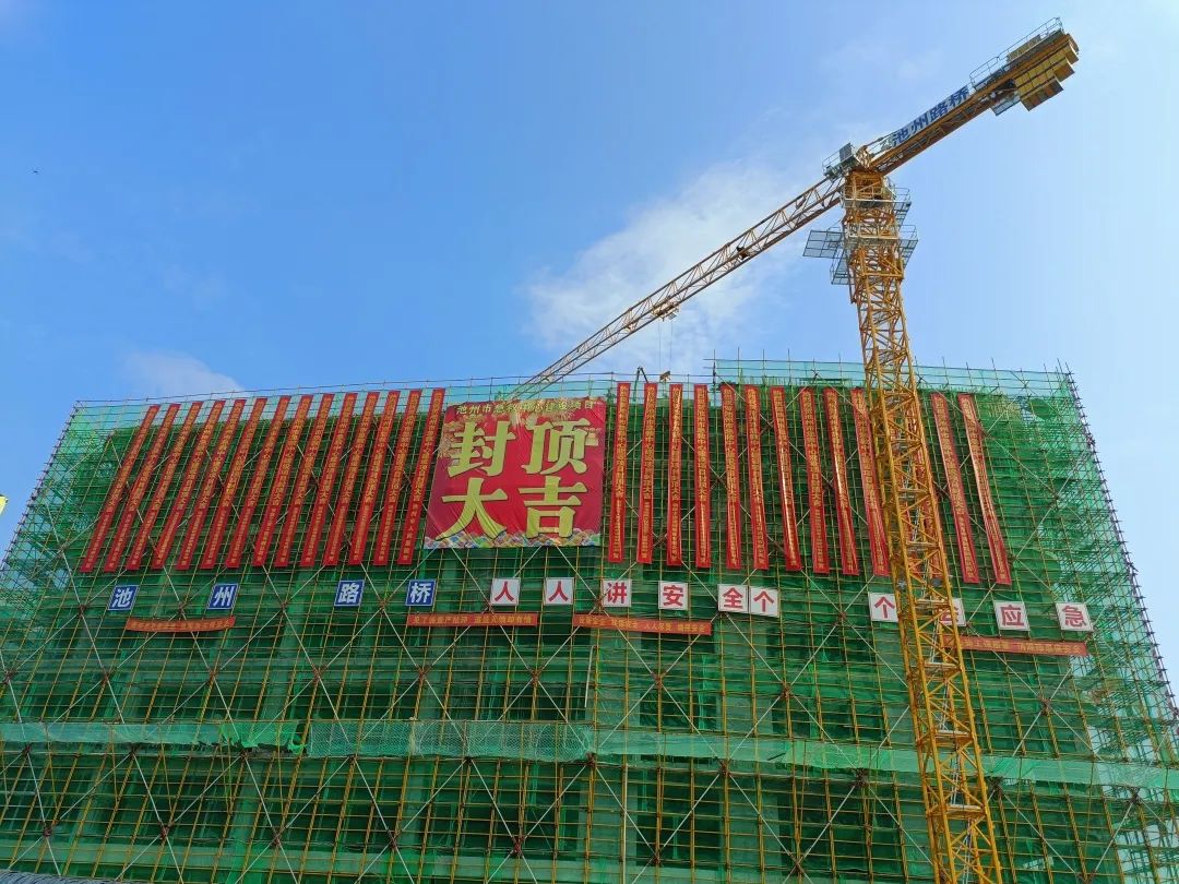 自2022年9月26日開工建設(shè)以來,建投集團組織精干隊伍,派駐優(yōu)秀技術(shù)骨干,投入先進機械設(shè)備,全力按高起點、高標準、嚴要求推進項目建設(shè)。于2022年底前完成了深基坑開挖及支護工程,為項目主體施工奠定了安全、堅實的基礎(chǔ)。主體結(jié)構(gòu)施工中采用大跨度、高支模及后張法預(yù)應(yīng)力梁工藝,秉承“安全第一、預(yù)防為主、綜合治理”的安全生產(chǎn)方針,堅持安全是根本、質(zhì)量是生命的發(fā)展理念,全力推動項目建設(shè),克服困難,承壓奮進。最終歷時10個月,于2023年8月6日圓滿完成主體結(jié)構(gòu)封頂。