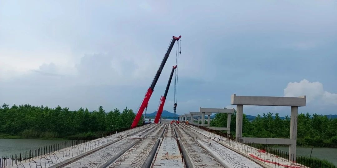 預(yù)制空心板首件的成功安裝打響了碼頭引橋部分上部結(jié)構(gòu)施工的第一槍,為后續(xù)安裝架設(shè)提供了寶貴經(jīng)驗(yàn)。目前,正是烏沙港各個(gè)施工節(jié)點(diǎn)突破的關(guān)鍵期,各參建管理人員在烏沙港現(xiàn)場艱苦鏖戰(zhàn),掛圖作戰(zhàn),倒排工期,加壓奮進(jìn),在確保安全和質(zhì)量的前提下,全力推進(jìn)項(xiàng)目建設(shè)進(jìn)度,全力沖刺項(xiàng)目年度建設(shè)的節(jié)點(diǎn)目標(biāo)。