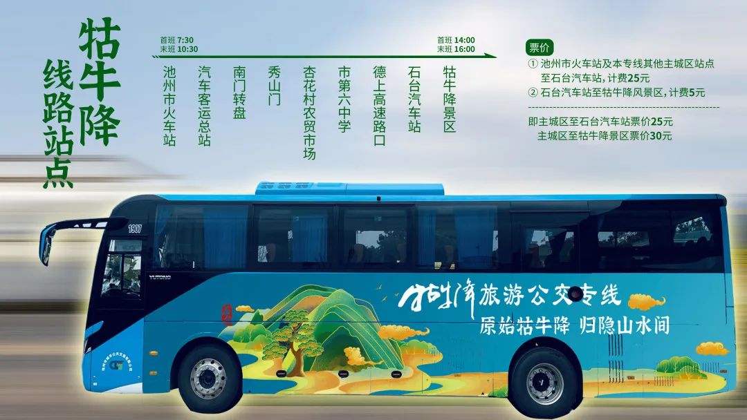 11月1日,池州主城區(qū)環(huán)城旅游公交線(xiàn)路和池州高鐵站至牯牛降景區(qū)旅游直通專(zhuān)線(xiàn)正式開(kāi)通。環(huán)城公交線(xiàn)路全長(zhǎng)約35公里,配備4臺(tái)新能源純電動(dòng)公交車(chē),采取環(huán)線(xiàn)運(yùn)營(yíng)模式,途徑杏花村、平天湖、齊山、百牙塔、天堂湖公園等特色景區(qū)景點(diǎn)。火車(chē)站至牯牛降景區(qū)旅游直通專(zhuān)線(xiàn)全長(zhǎng)100公里,沿線(xiàn)設(shè)置9個(gè)停靠點(diǎn),采用循環(huán)發(fā)車(chē)模式,旅客可直接“打卡”牯牛降景區(qū),暢游石臺(tái)享受美好“硒”生活。