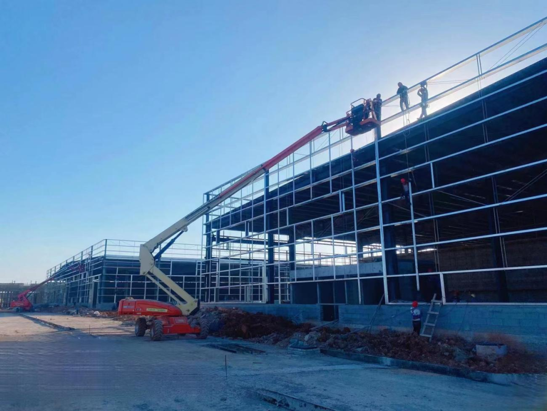 綜合動力站與綜合倉庫第一層瓦、地面機(jī)電預(yù)埋和二次構(gòu)造柱已結(jié)束,正在進(jìn)行墻面甩漿施工,硅烷站、氫氣站、笑氣氨氣站屋面第一層瓦結(jié)束,CDS站、空壓站砌筑完成,化學(xué)品庫砌筑完成60%,危廢庫正在地基基礎(chǔ)回土,附屬工程已完成60%。