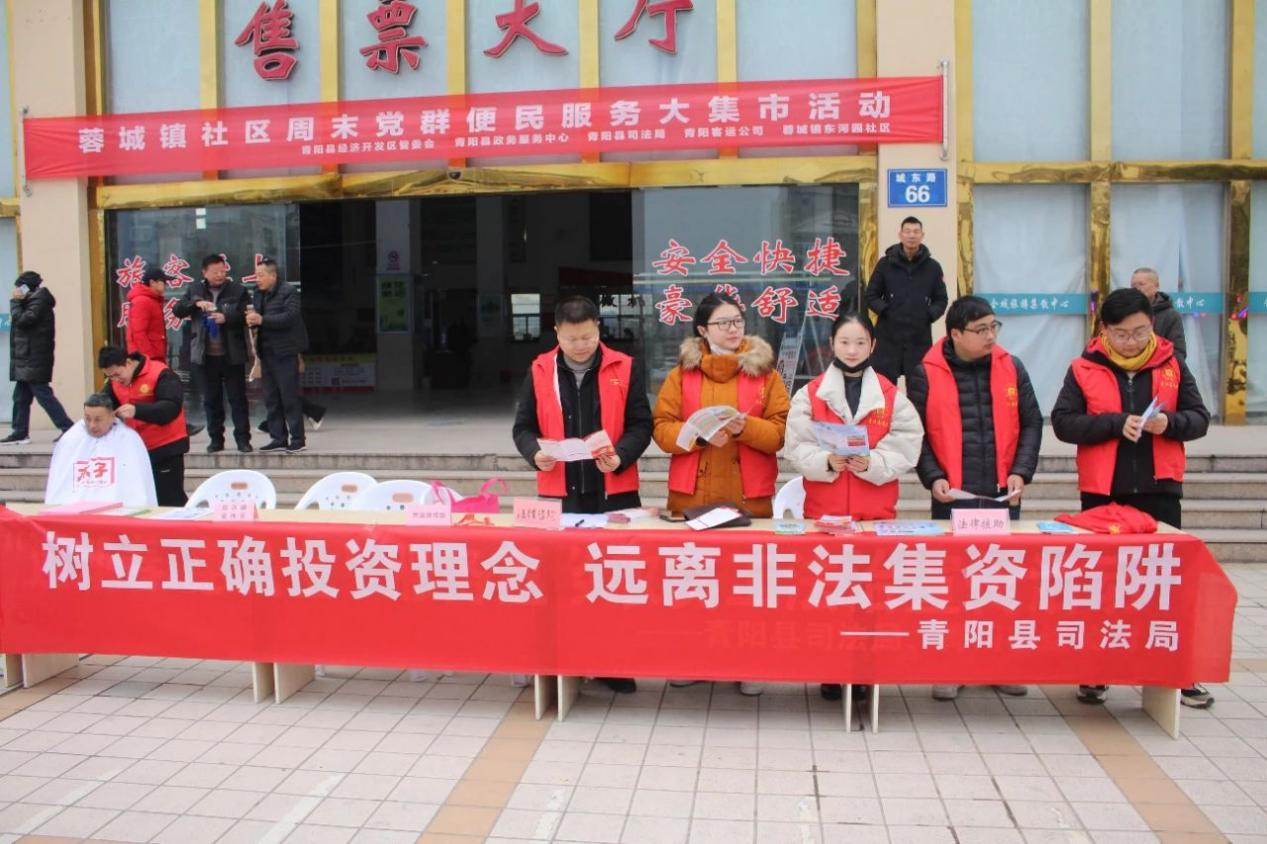 臨近年底,返鄉(xiāng)人員逐漸增多,為幫助群眾及返鄉(xiāng)人員擦亮眼睛,精準(zhǔn)識別各類投資陷阱,1月26日池州交運(yùn)集團(tuán)青陽客運(yùn)公司、青陽縣司法局聯(lián)合在站前廣場上開展預(yù)防非法集資法治宣傳活動。