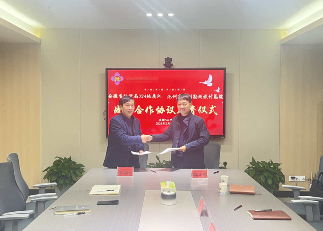 2月4日,池州市規(guī)劃勘測(cè)設(shè)計(jì)總院與安徽省地質(zhì)礦產(chǎn)勘查局324地質(zhì)隊(duì)簽署戰(zhàn)略合作協(xié)議。