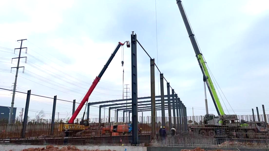 公用型保稅倉庫項目于2023年12月初正式開工建設,項目建成后主要提供各種有色金屬及大宗散貨礦產品的倉儲,報關,報檢,報稅及物流配送等服務。復工以來,全體工作人員精神飽滿,拿出了開工即決戰(zhàn)、起步即沖刺的精神狀態(tài)投入到項目施工中。目前保稅倉庫鋼結構鋼柱鋼梁已搭設完成,其附屬設施中制樣間、地磅棚、沉淀池基礎筏板等基礎設施已基本完成。商發(fā)公司將掛圖作戰(zhàn)、打表推進公用型保稅倉庫項目建設,確保項目早建成、早投運、早見效。