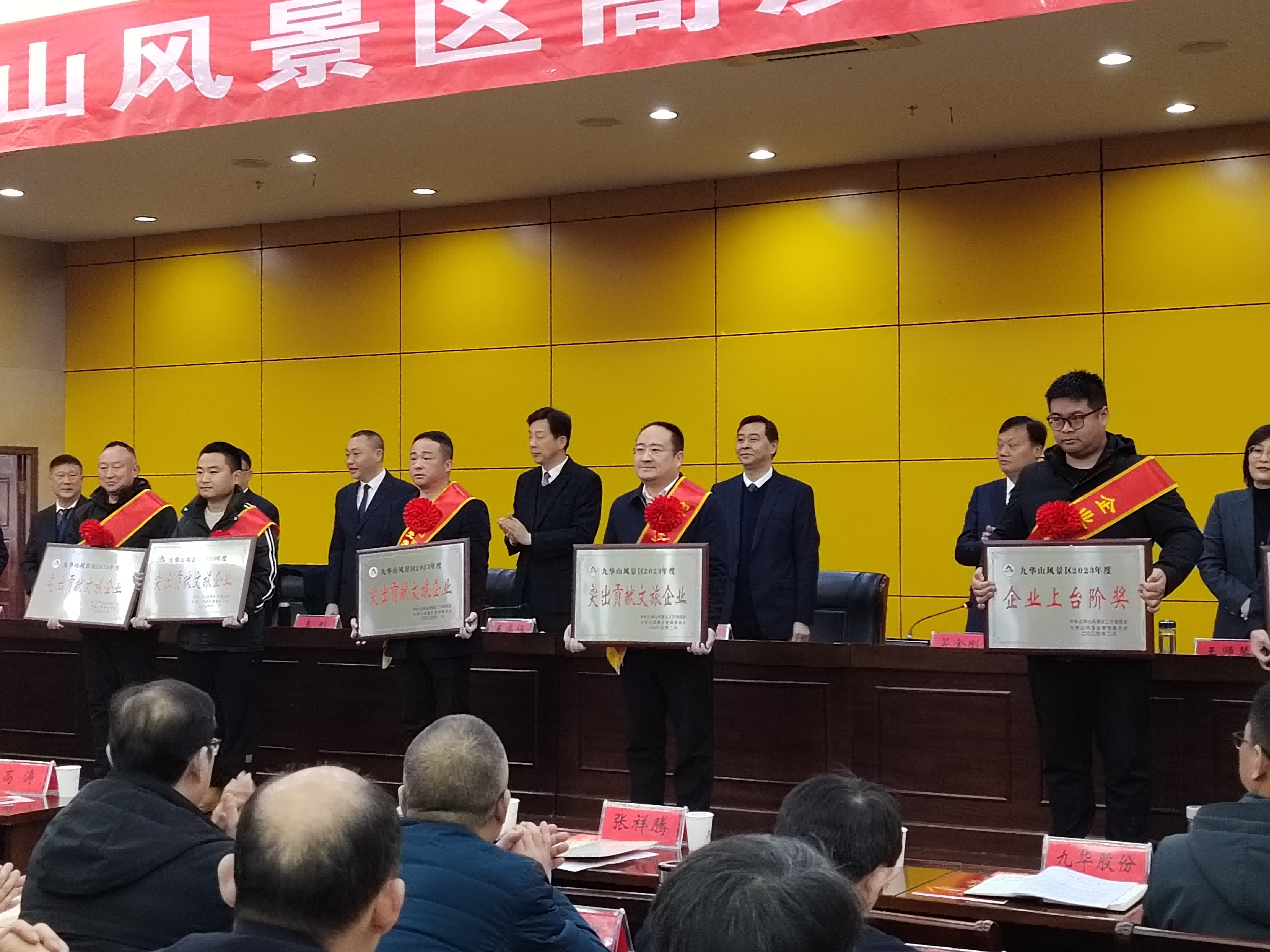 會議表彰了九華山風(fēng)景區(qū)2023年度優(yōu)秀外來投資企業(yè)家、突出貢獻(xiàn)文旅企業(yè)、高品質(zhì)旅游民宿、先進(jìn)單位和先進(jìn)個(gè)人,并進(jìn)行了授牌頒獎。文旅集團(tuán)大愿文化園分公司榮獲九華山風(fēng)景區(qū)2023年度“突出貢獻(xiàn)文旅企業(yè)”,分公司安全員鄧慧敏同志榮獲九華山風(fēng)景區(qū)2023年度“安全生產(chǎn)先進(jìn)個(gè)人”。