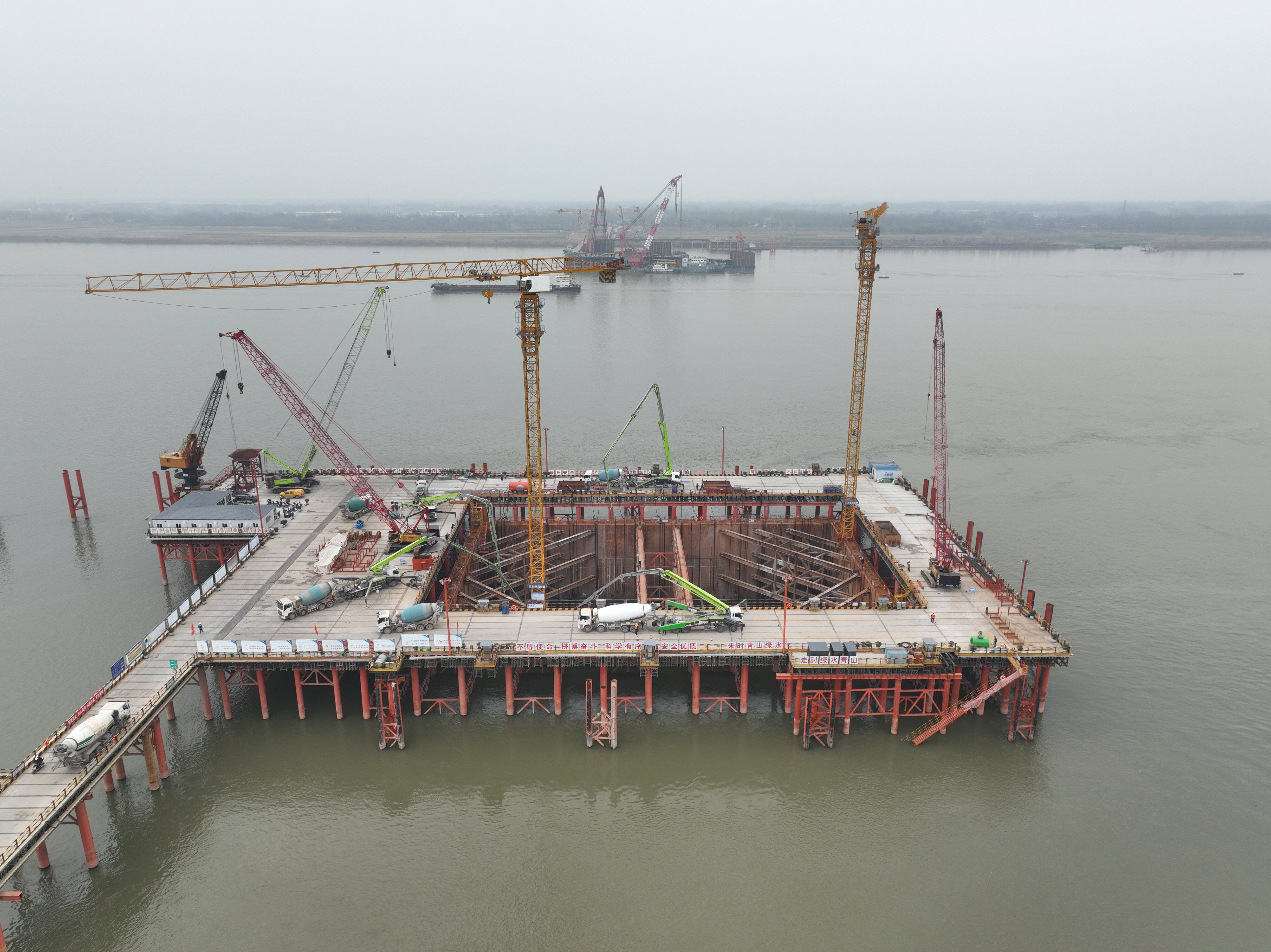 3月17日上午,皖江之畔,由建投集團(tuán)承建的池州長江公鐵大橋南岸4號主墩迎來新年首個(gè)節(jié)點(diǎn)。歷時(shí)約90個(gè)小時(shí)的連續(xù)施工,大橋4號主墩承臺首次混凝土澆筑順利完成,也是全橋首次進(jìn)行主墩承臺澆筑混凝土,標(biāo)志著池州大橋南岸率先轉(zhuǎn)入承臺施工,為后續(xù)施工奠定了良好基礎(chǔ)。