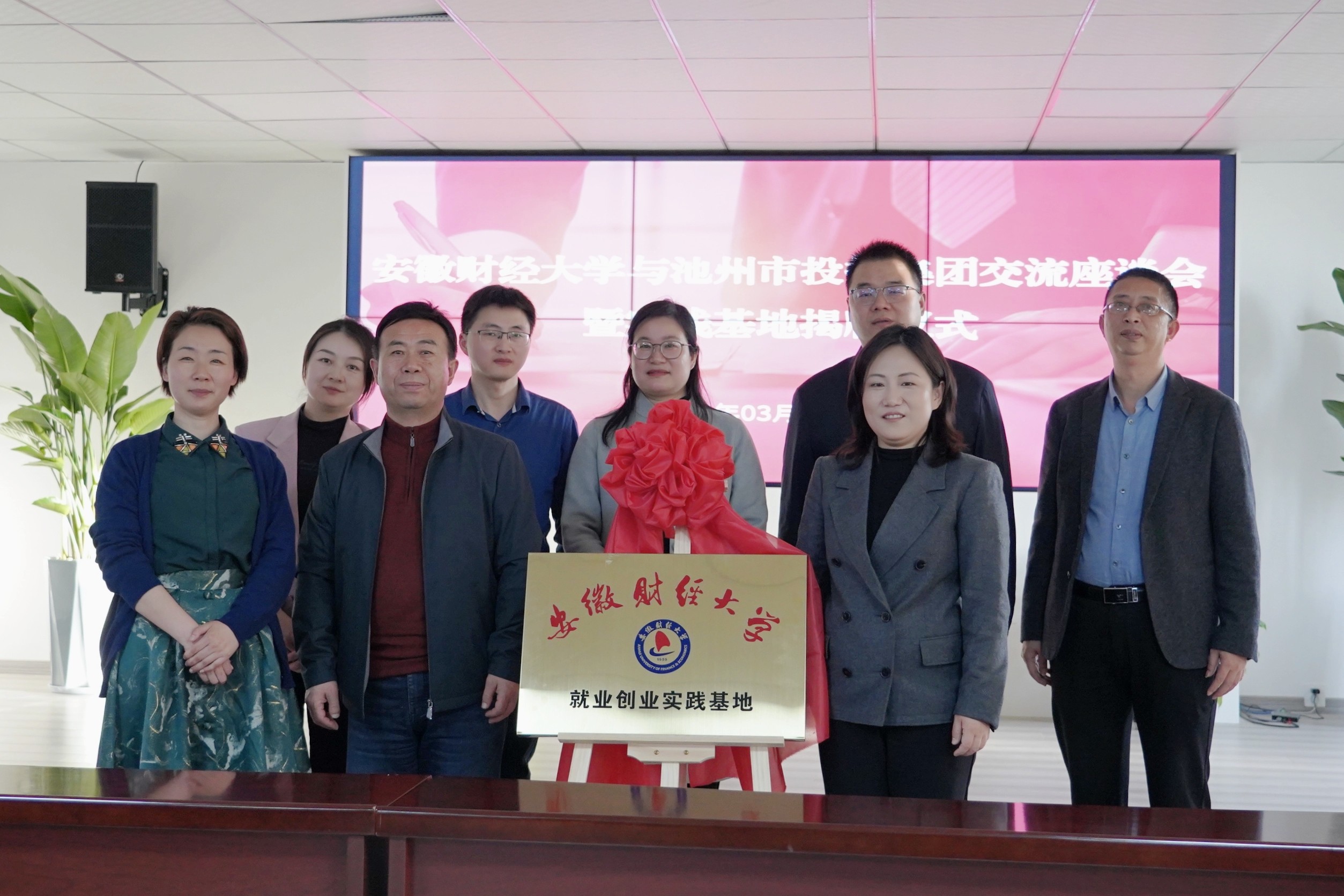 安財校黨委常委、副校長趙曉明,池州市人社局黨組成員、市人事考試指導中心主任章和平與集團黨委副書記、工會主席嚴艷共同為“安徽財經(jīng)大學就業(yè)創(chuàng)業(yè)實踐基地”揭牌。