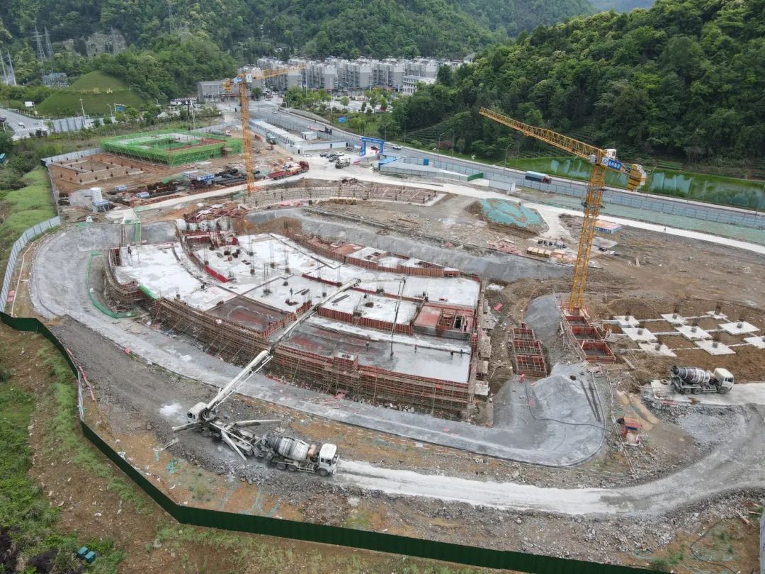 該項目于2023年10月13日開始樁基工程施工,至今已完成酒店地下室深基坑支護(hù)、樁基礎(chǔ)、地下室底板砼澆筑、頂板鋼筋綁扎以及非地下室區(qū)域基礎(chǔ)施工,頂板砼于今日澆筑完成;宿舍樓二層樓面正在綁扎梁板鋼筋;設(shè)備用房基礎(chǔ)已完工,正在施工一層地面。