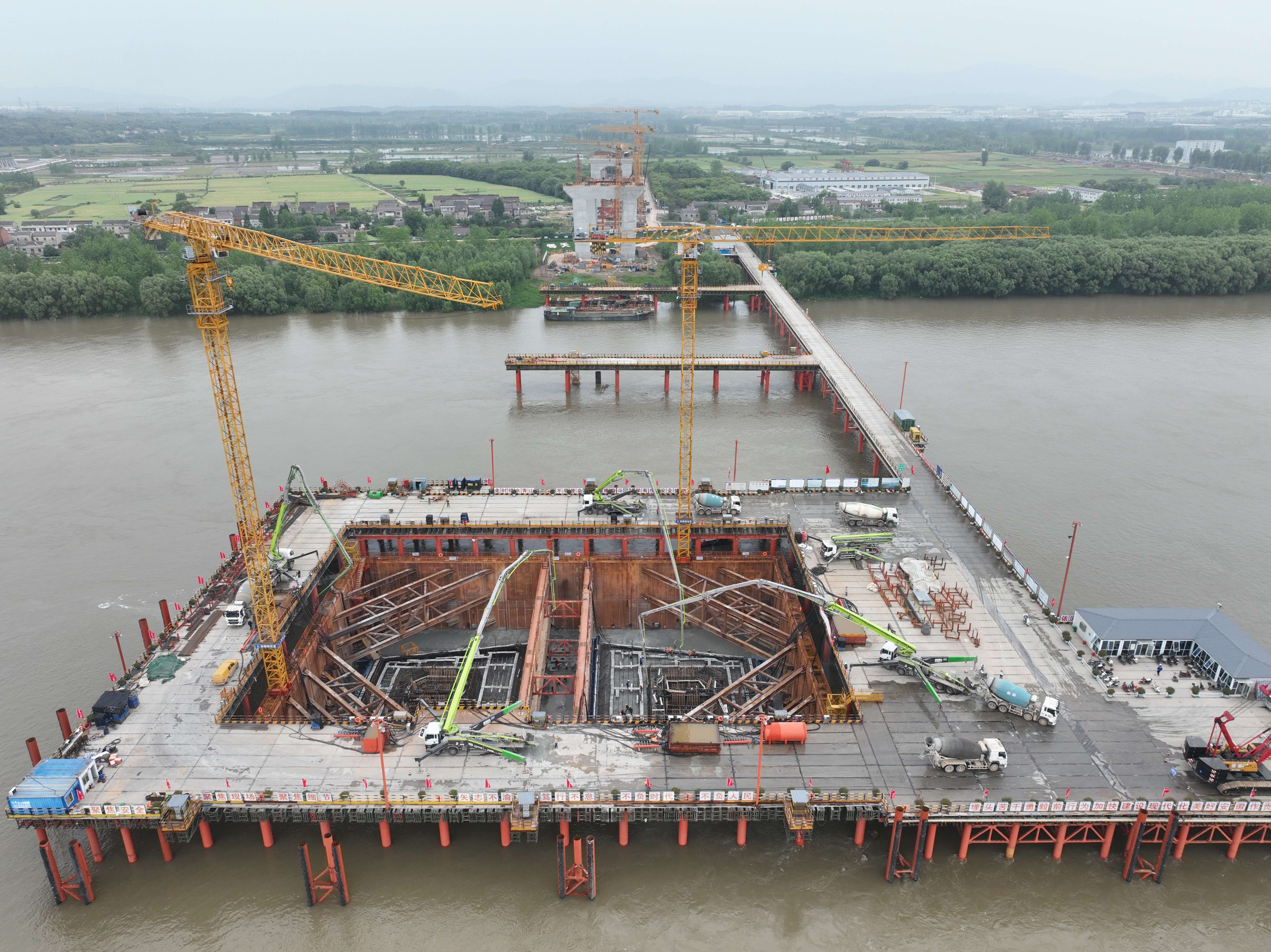 截至目前,池州長江公鐵大橋主橋4號(hào)墩承臺(tái)第一層施工完成,5號(hào)墩鐵路墩身已施工完成,6號(hào)墩目前在進(jìn)行鐵路墩蓋梁施工。引橋完成10個(gè)承臺(tái)施工,S4號(hào)墩和S5號(hào)墩鐵路墩身已施工完成,8個(gè)鐵路墩身正在進(jìn)行施工。