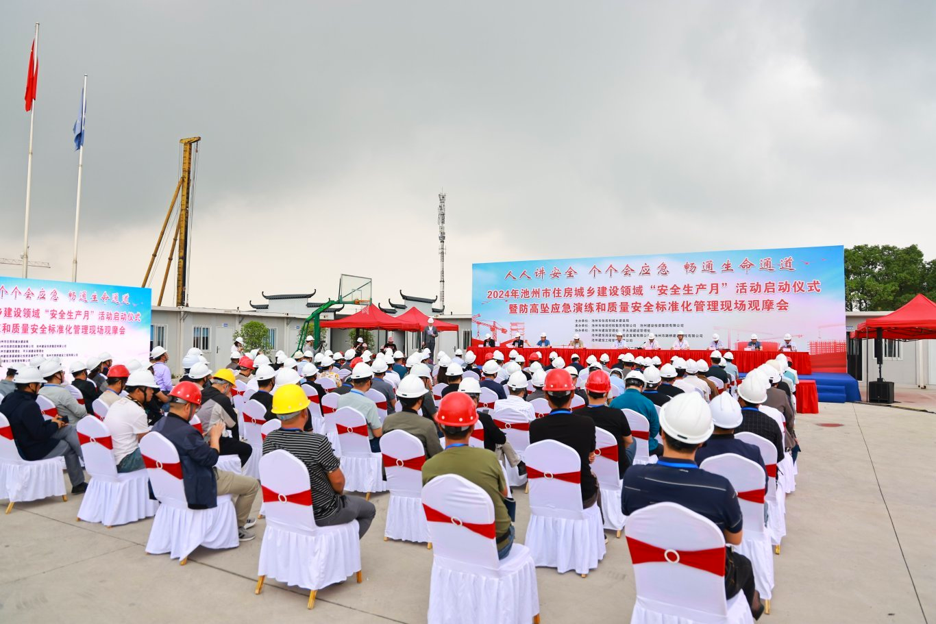 2024年6月是第23個全國“安全生產(chǎn)月”,為深入貫徹安全生產(chǎn)理念,提高住房城鄉(xiāng)建設(shè)領(lǐng)域的安全生產(chǎn)管理水平,由市投控集團(tuán)及所屬建投集團(tuán)承辦的“安全生產(chǎn)月”活動啟動儀式暨防高墜應(yīng)急演練和質(zhì)量安全標(biāo)準(zhǔn)化管理現(xiàn)場觀摩會在池州市市政公服基地項目隆重舉行。